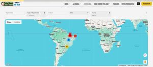 Nesse mapa, as ações cadastradas podem ser filtradas por país, tipo de organização, instituição específica e ODS trabalhado, propiciando uma visualização global das atividades locais, dispersas por todo o globo.