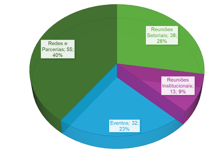 O grande destaque de 2025 foi a capacidade de articulação da universidade. Cerca de 40% de todas as atividades do setor foram dedicadas ao fortalecimento de redes e parcerias. Foram 55 reuniões estratégicas com órgãos de peso como UNICEF, PNUD e a Rede ODS Brasil, provando que a Uema é essencial na rede de sustentabilidade global.